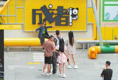 在成都太古里商圈,市民和游客可以体验到独具成都特色的购物和生活方式。本栏图片均由四川日报全媒体记者 郝飞 摄游客与拍照墙合影。春熙路上随处可见大熊猫元素。