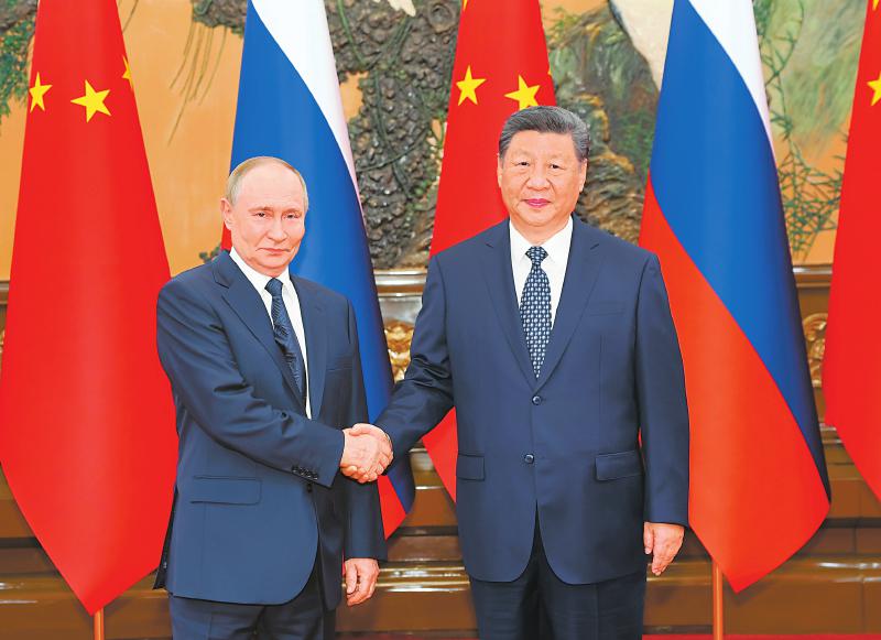 ●中俄两国元首相互出席对方国家举办的纪念世界反法西斯战争胜利庆典,充分彰显了作为第二次世界大战主要战胜国和联合国安理会常任理事国的大国担当,展示了维护二战胜利成果、捍卫正确二战史观的坚定决心