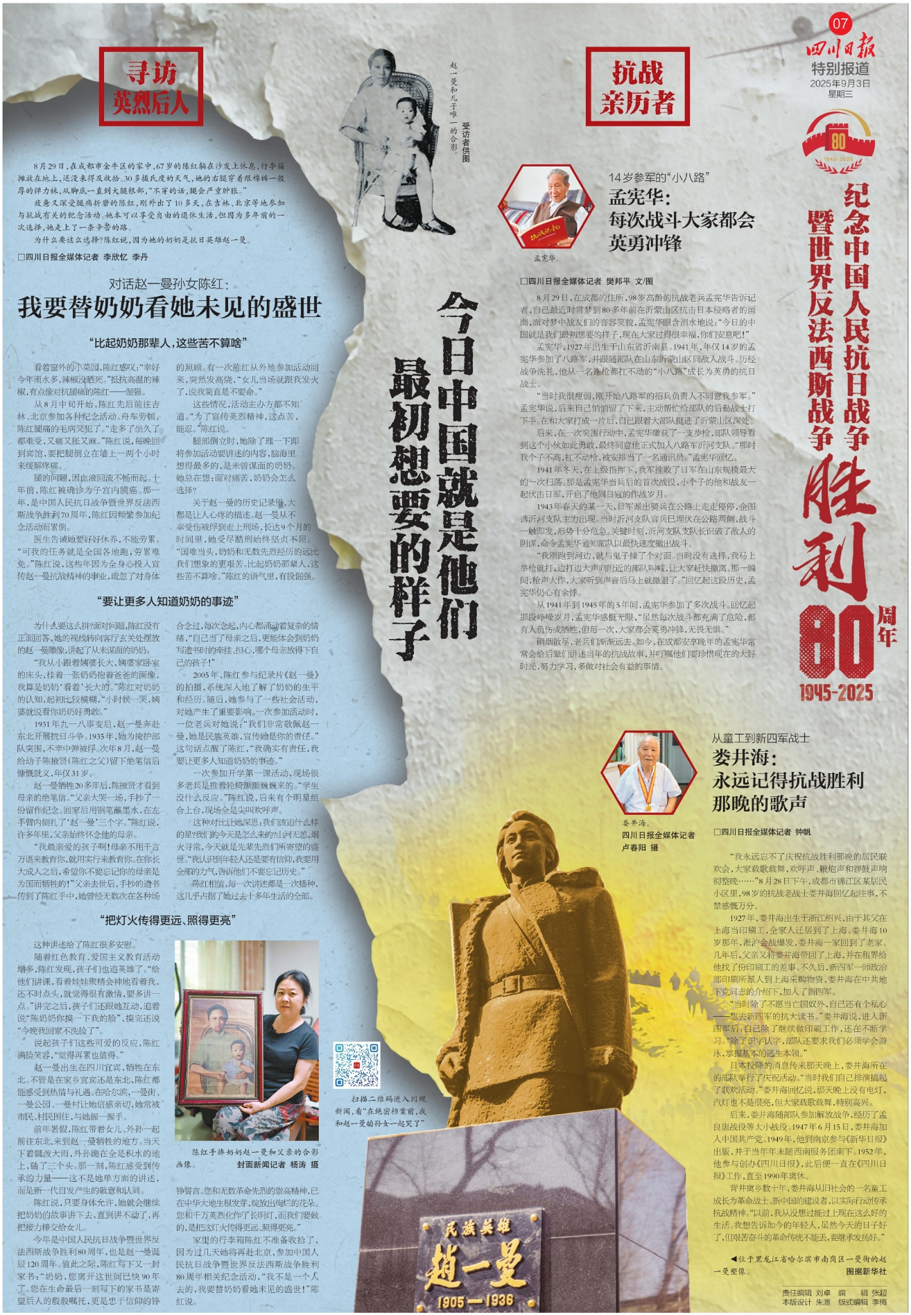 硝烟散尽,老兵们渐渐远去。如今,在成都安享晚年的孟宪华常常会给后辈们讲述当年的抗战故事,并叮嘱他们要珍惜现在的大好时光,努力学习,多做对社会有益的事情。
