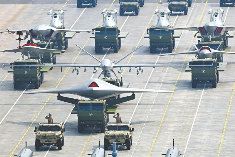空中无人作战方队接受检阅。 新华社记者 王鹏 摄