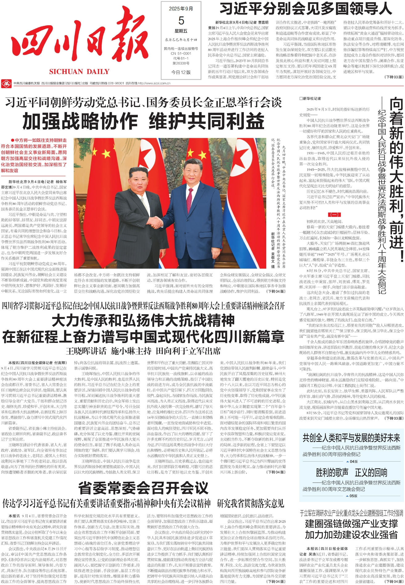 九月四日晚,中共中央总书记、国家主席习近平在北京人民大会堂同来华出席纪念中国人民抗日战争暨世界反法西斯战争胜利八十周年活动的朝鲜劳动党总书记、国务委员长金正恩举行会谈。新华社记者黄敬文摄