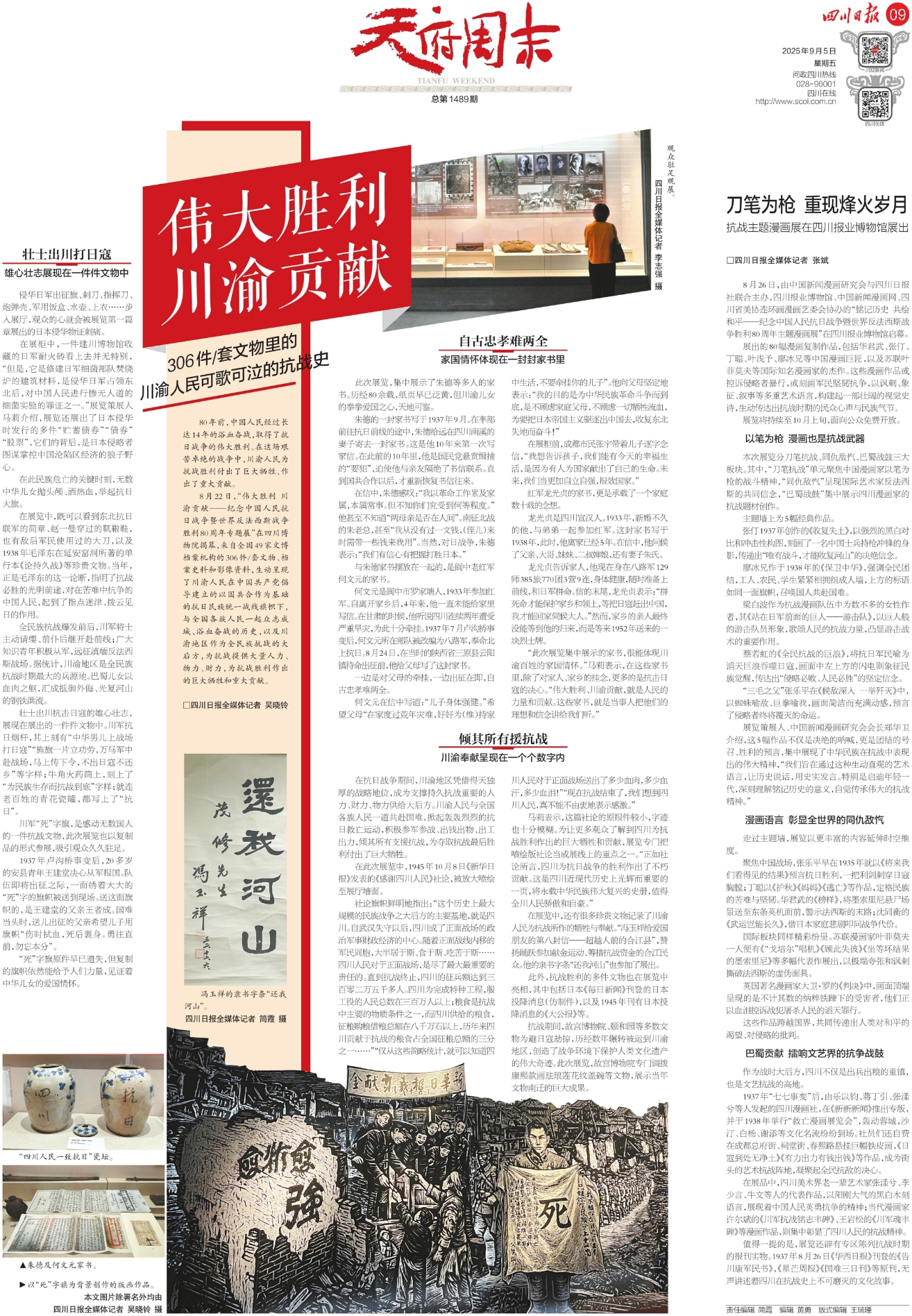 值得一提的是,展览还辟有专区陈列抗战时期的报刊实物。1937年8月26日《华西日报》刊登的《告川康军民书》,《星芒周报》《国难三日刊》等原刊,无声讲述着四川在抗战史上不可磨灭的文化故事。