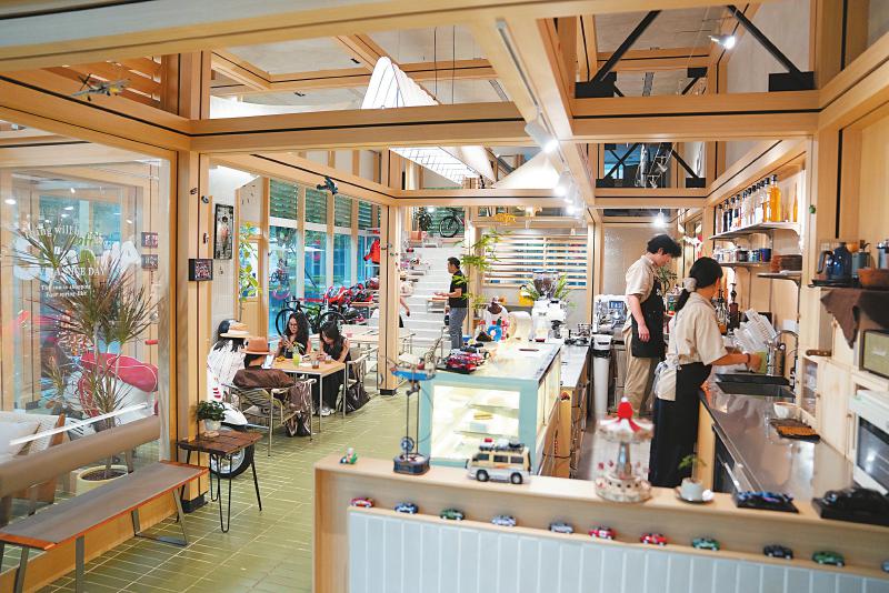 刚走到第一家店门口,店门上“这是一家有趣的咖啡店”几个字让我困惑。推门进入,店里摆放着山地自行车、摩托车等物品,三五成群的顾客正喝着咖啡聊着天……此情景给我的直观感受就是:它不像店,更像是一个生活场景。于是,我好奇地问门店负责人:“这究竟是卖咖啡的,还是卖自行车的?”