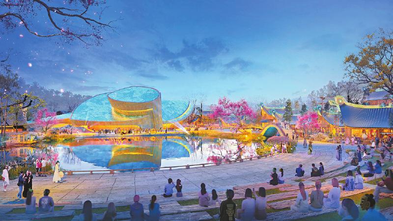 该项目位于三星堆博物馆东侧,总规划用地815亩,总建筑面积约16万平方米,旨在构建“文化+旅游+商业+ N”的多元业态体系,将建游客中心、集散广场、艺术公园、沉浸式剧场、文物活化展馆、主题商业街、特色客栈及度假酒店等,通过住宿、演艺、巡游、商业等多业态融合,营造强体验、深沉浸的新型文旅消费场景。项目分两期建设:一期包含115亩度假酒店和165亩示范区,预计2026年7月开放;二期535亩核心景区计划2028年春节亮相。