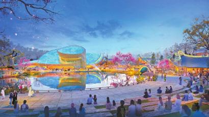 ●一期包含度假酒店和示范区,预计2026年7月开放,二期核心景区计划2028年春节亮相