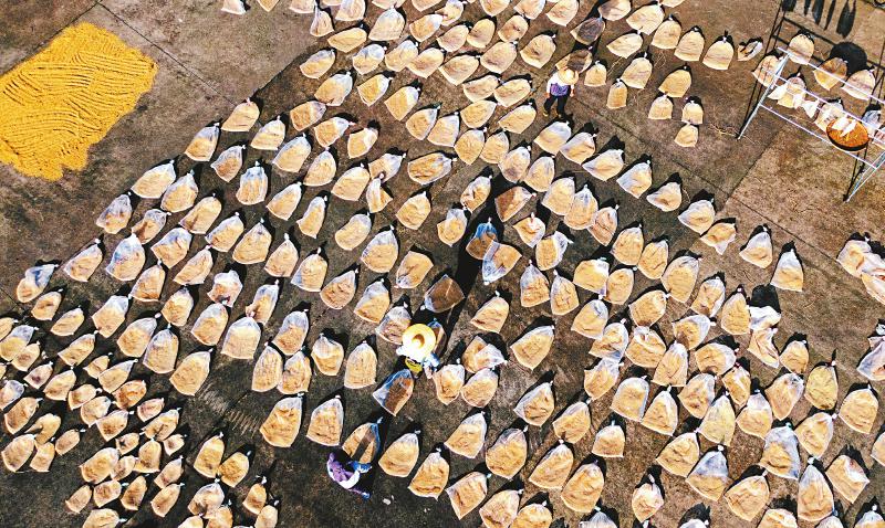 眼下正值水稻收割季,9月10日,位于德阳市旌阳区东湖街道大地村的四川省农业科学院水稻高粱研究所试验基地,科研人员开展水稻育种材料选种作业。近年来,该所选育超级稻新品种3个,其中品香优秱珍、品香优美珍多次刷新川渝两地丘陵、平原“一级优米”高产纪录。图为科研人员在翻晒收获的水稻育种材料。 唐渝川 摄(C视觉)