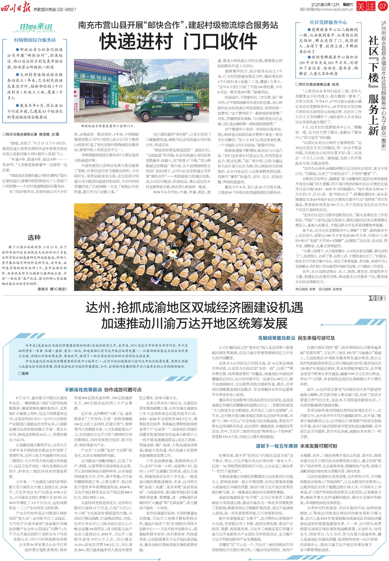 作为成渝地区双城经济圈重要的区域中心城市之一,达州不仅加速推动川渝万达开地区统筹发展,更铆足劲融入成渝地区双城经济圈、服务成渝地区双城经济圈建设。如今,区域协同发展的歌声在川渝东北的山水间越唱越响。