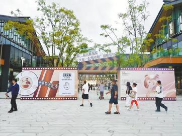 金融城双子塔、宽窄巷子、兴隆湖等10个城市地标成为户外影院,近百幅世界经典电影海报在西村大院环形跑道上徐徐展开……展映活动让整个成都变成一座巨大的电影院,市民在晚风中信步而至,逛电影市集,感受夜跑人群活力,融入成都生活韵味。