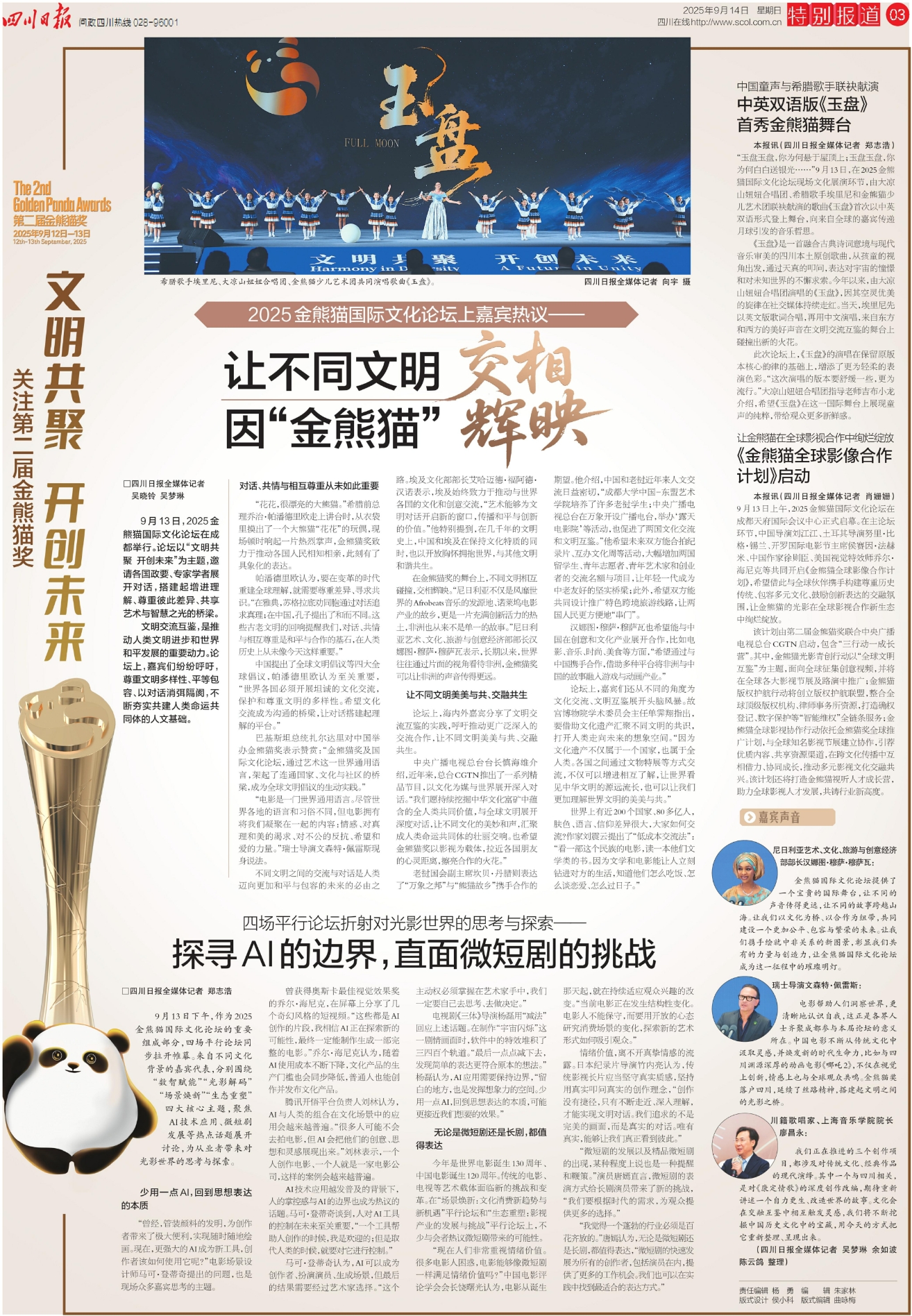 9月13日下午,作为2025金熊猫国际文化论坛的重要组成部分,四场平行论坛同步拉开帷幕。来自不同文化背景的嘉宾代表,分别围绕“数智赋能”“光影解码”“场景焕新”“生态重塑”