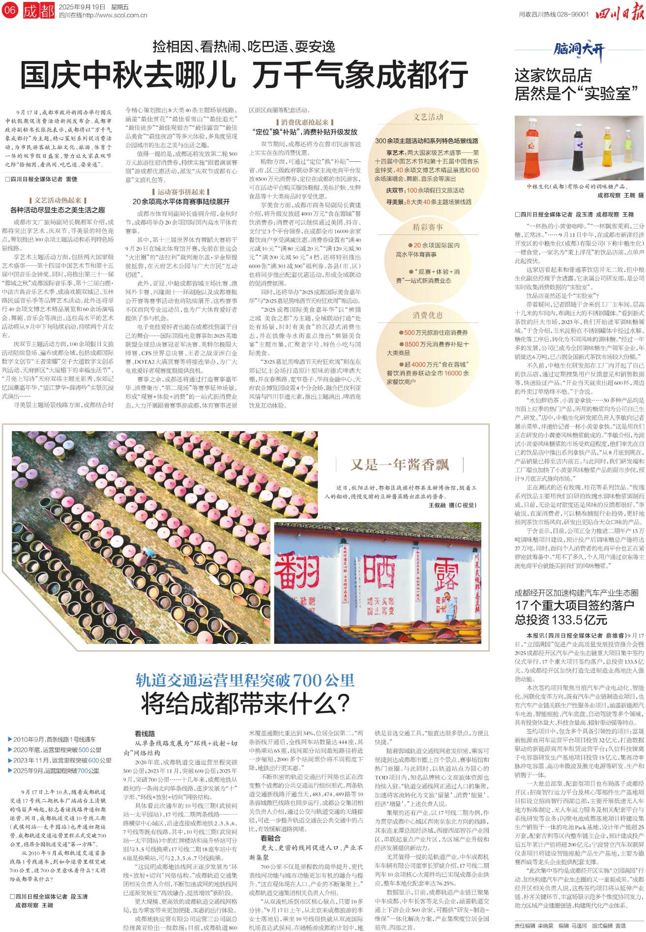值得一提的是,成都还将发放第二轮500万元旅游住宿消费券,持续实施“跟着演展赛剧”游成都优惠活动,派发“庆双节成都有心意”文旅礼包等。