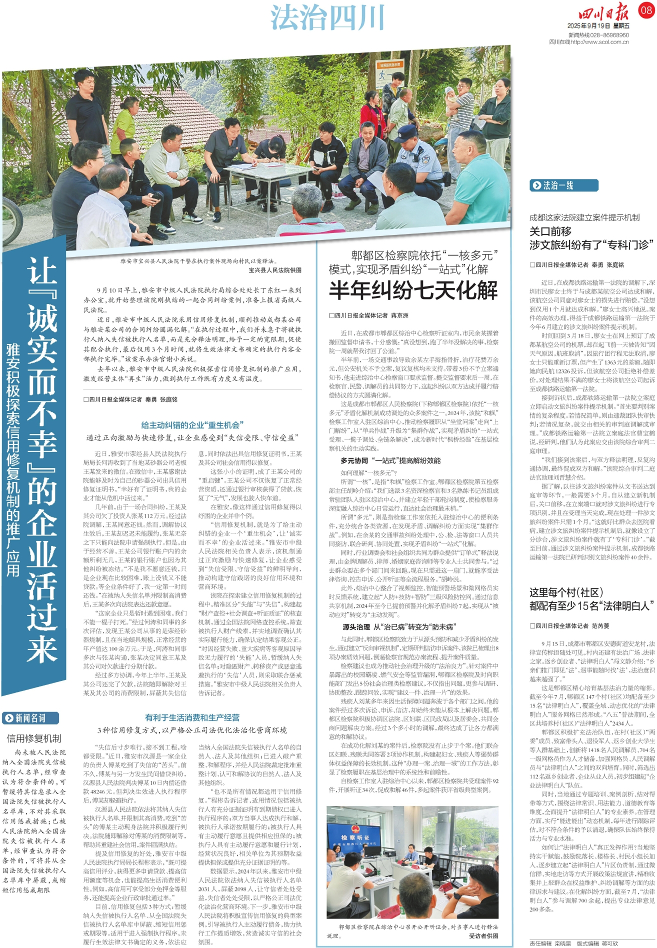 这是郫都区精心培育基层法治力量的缩影。截至今年7月,郫都区147个村(社区)均配备至少15名“法律明白人”,覆盖全域、动态优化的“法律明白人”服务网格已然形成。“八五”普法期间,全区共培养村(社区)“法律明白人”2434人。