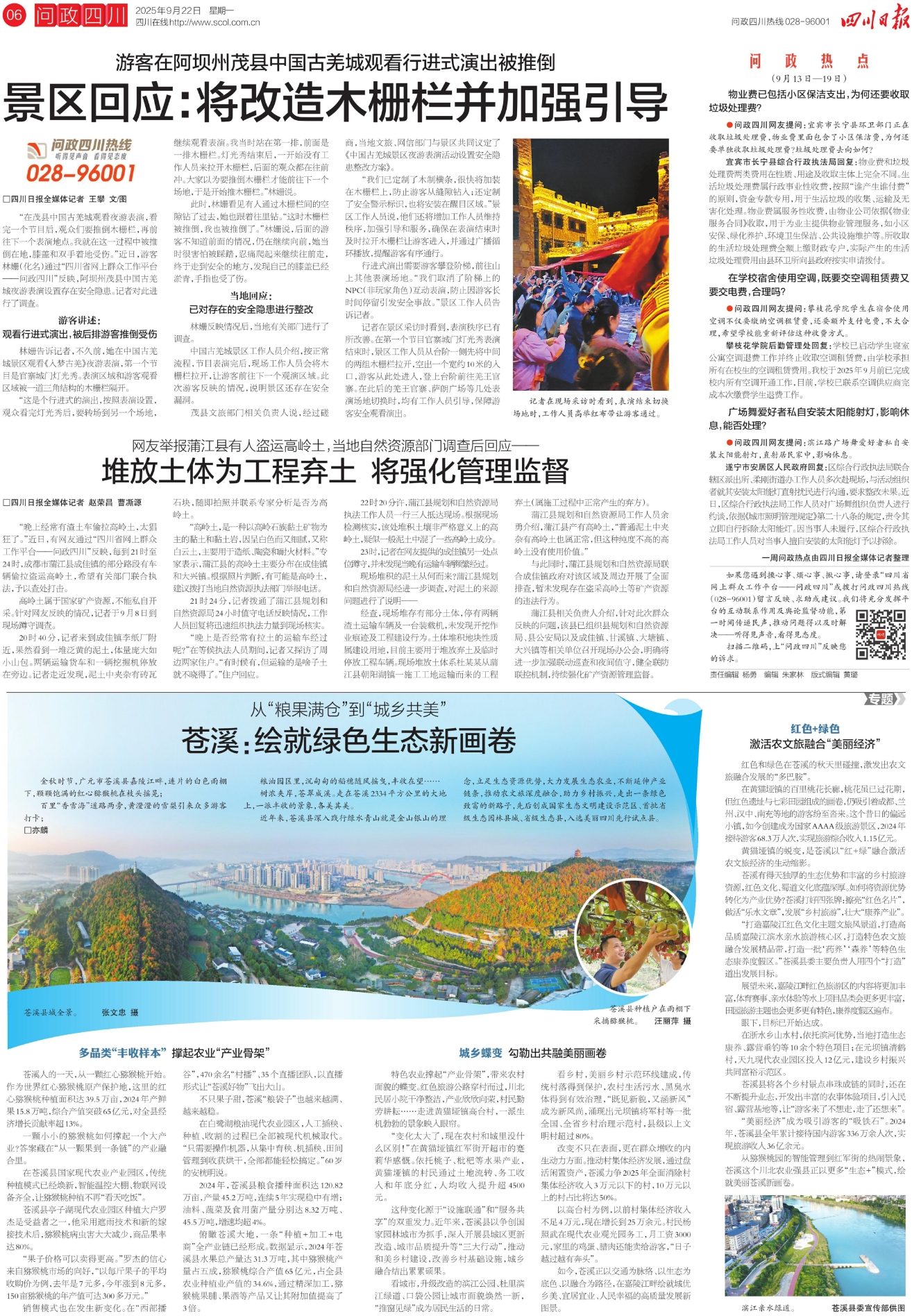 “我们已定制了木制横条,很快将加装在木栅栏上,防止游客从缝隙钻入;还定制了安全警示标识,也将安装在醒目区域。”景区工作人员说,他们还将增加工作人员维持秩序,加强引导和服务,确保在表演结束时及时拉开木栅栏让游客进入,并通过广播循环播放,提醒游客有序通行。