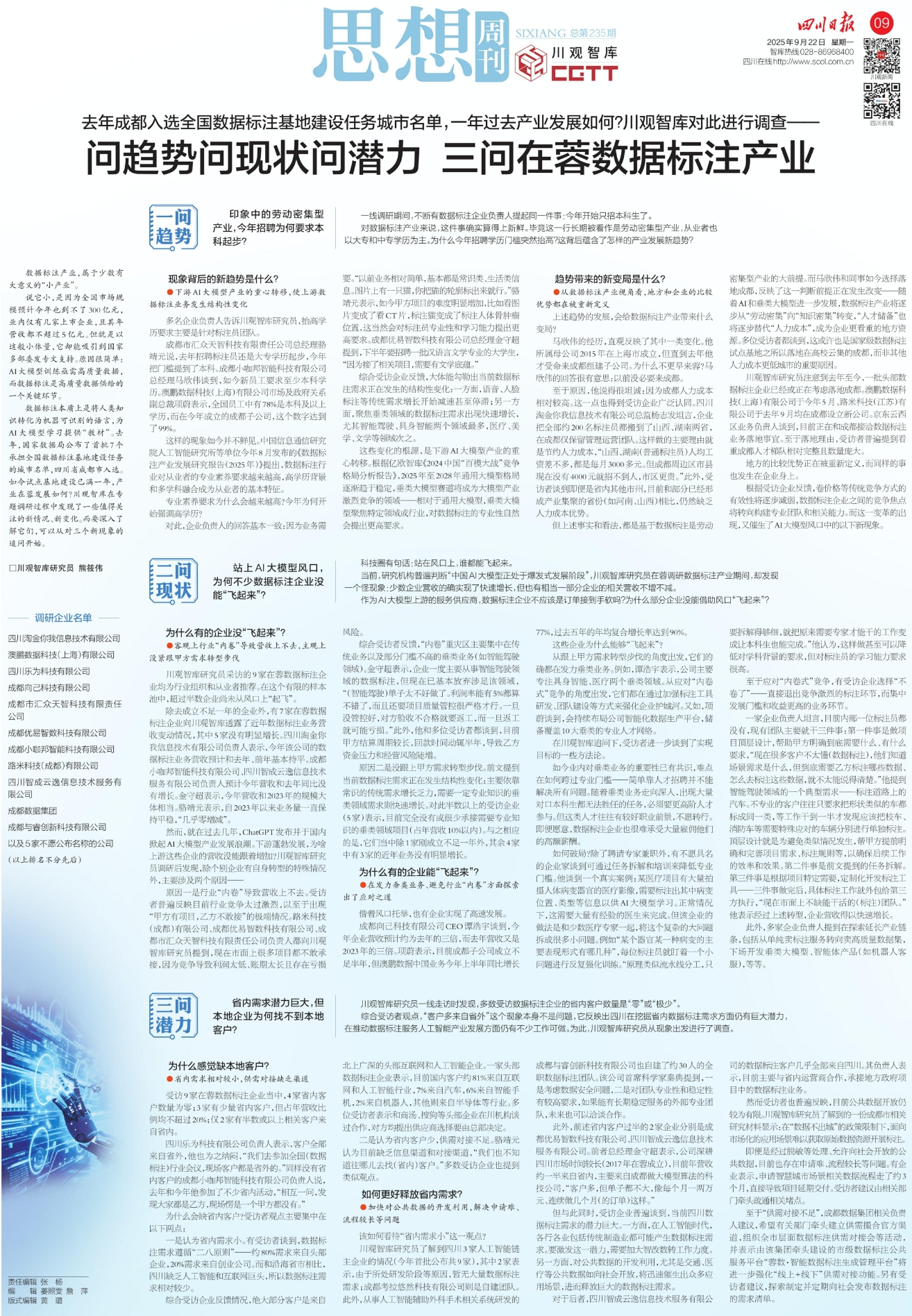 去年成都入选全国数据标注基地建设任务城市名单,一年过去产业发展如何?川观智库对此进行调查——