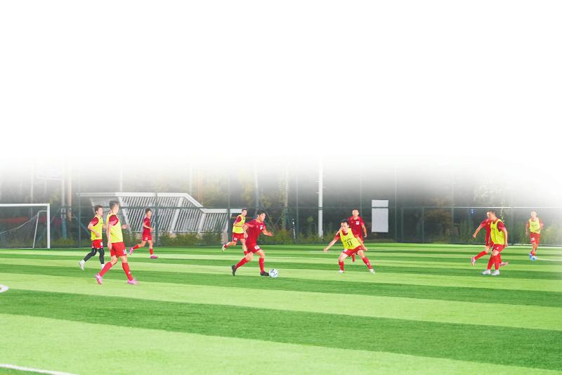 9月17日傍晚时分,位于眉山市东坡区的东坡岛体育公园足球训练场亮起灯光,身着红色球衣的李雨晋与队员们奔跑在球场上,控球、回传……一个个矫健的身影在暮色中画出利落的红色弧线。