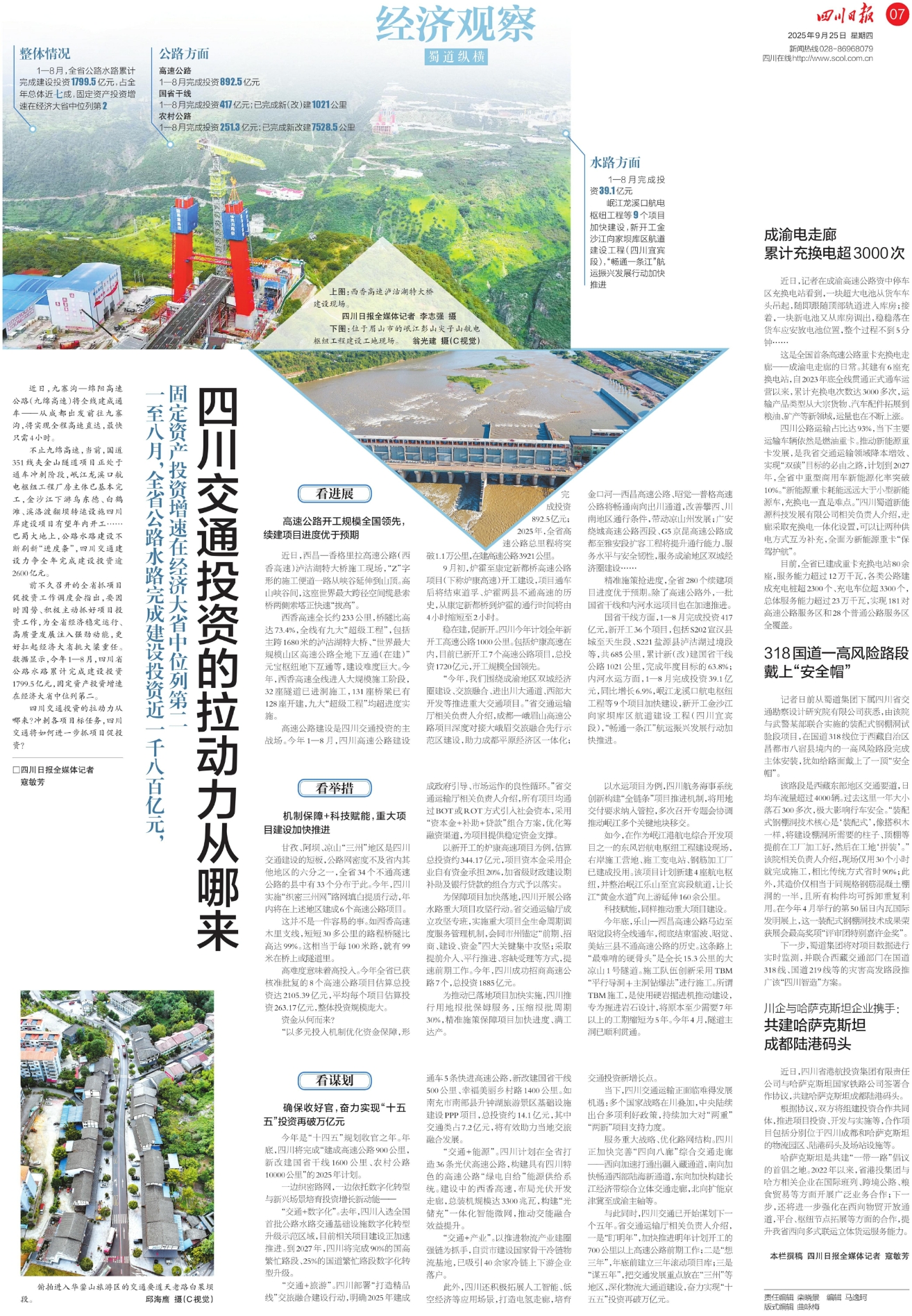 四川公路运输占比达93%,当下主要运输车辆依然是燃油重卡。推动新能源重卡发展,是我省交通运输领域降本增效、实现“双碳”目标的必由之路,计划到2027年,全省中重型商用车新能源化率突破10%。“新能源重卡耗能远远大于小型新能源车,充换电一直是难点。”四川蜀道新能源科技发展有限公司相关负责人介绍,走廊采取充换电一体化设置,可以让两种供电方式互为补充,全面为新能源重卡“保驾护航”。