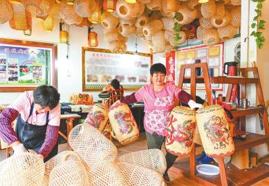 9月26日,南充市高坪区小康竹编农民专业合作社,村民正在制作、搬运竹编灯笼。临近“双节”,各式竹编灯笼热销。杨波 摄(C视觉)