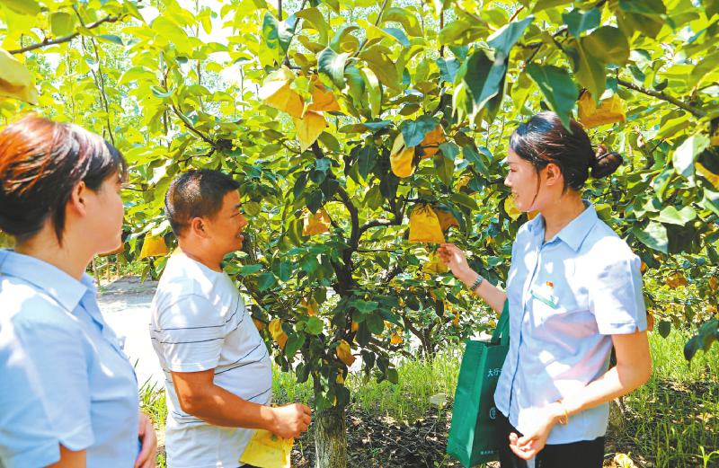 农行工作人员了解雪梨种植户经营情况。