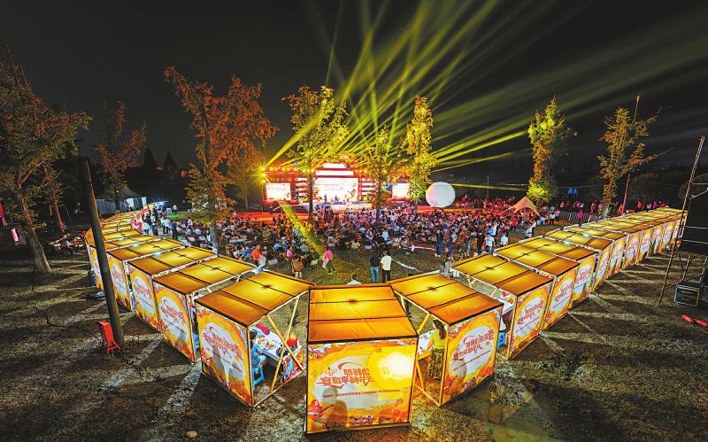 9月29日晚,成都新都高新技术产业园区沐光森林营地草坪,为期8天的新都区第二届银杏林下嘉年华音乐节系列活动开幕,游客在银杏林下看演出、逛市集、赏音乐、品美食。国庆中秋大假期间,一系列国潮焕新活动将在成都多个景区、古镇、街区等同步开启。四川日报全媒体记者 李向雨 摄