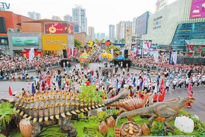 本报讯(四川日报全媒体记者 丛雨萌)“快看,恐龙嘴巴动了!”10月1日10时,自贡市华商南苑街至迎春路的1.2公里街道上,自贡国际恐龙文化旅游节核心活动——“史前派对 恐龙大巡游”启幕。318名演职人员组成6大主题方阵,以沉浸式表演串联起盐都地质记忆与传统文化;正午掀起千人大合唱热潮,饱含家国情怀的歌声在街头巷尾飘荡。