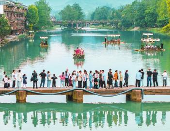 今年国庆中秋假期,一系列“蓉城囍事”文旅活动在邛崃展开:天台山景区开展“爱在天台·月圆时”活动,设“文君相如传统大婚”“高空栈道十二花仙巡游”等特色环节;夹关镇围绕“一生所爱”主题,举行白沫江畔特色水上婚礼、永寿桥光影秀等活动,让新人感受别样浪漫。