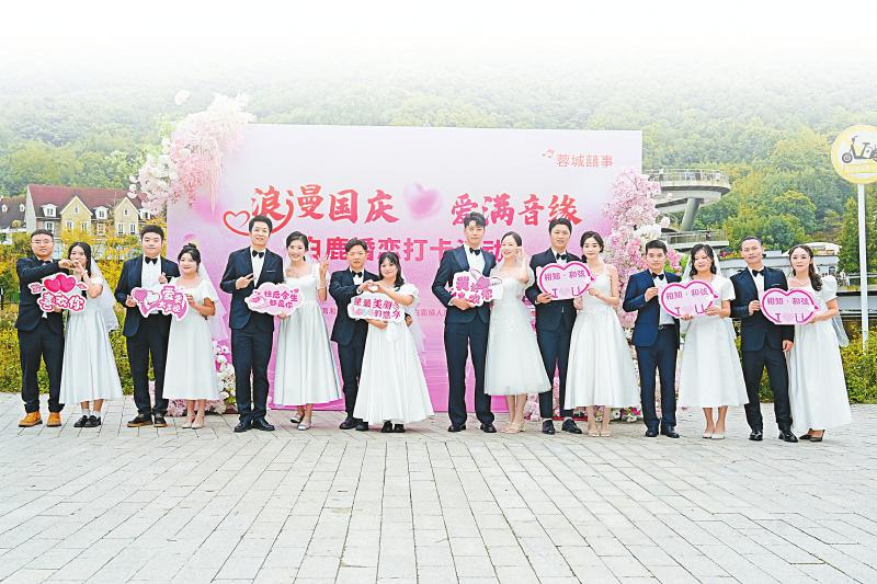 10月3日,成都市彭州白鹿音乐小镇,“浪漫国庆·爱满音缘”主题活动将小镇化作一座被音符包围的浪漫殿堂,为前来参与活动的一对对新人开启幸福旅程。
