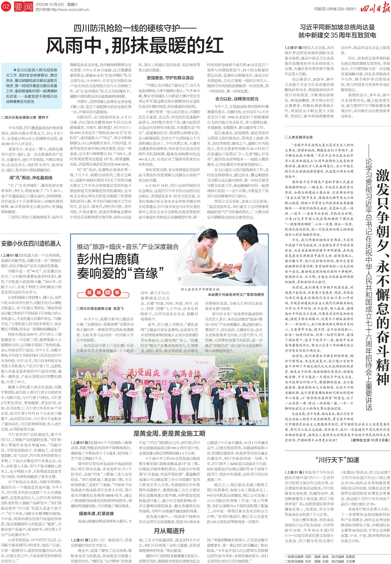 向险而行,全力抢险保安全。9月11日晚,内江隆昌市遭遇2007年洪灾以来最强暴雨,当地市、镇(街道)、村(社区)三级5300余名党员干部组成260余支“红色队伍”,逐村逐组入户“叫应”,争分夺秒转移群众;对山洪地质灾害点、行洪河道、水库等高危区域开展拉网式排查。经过一夜奋战,全市累计转移群众231户529人,及时发现处置安全隐患127处,清理道路、沟渠、河道等区域淤泥及垃圾3000余吨。