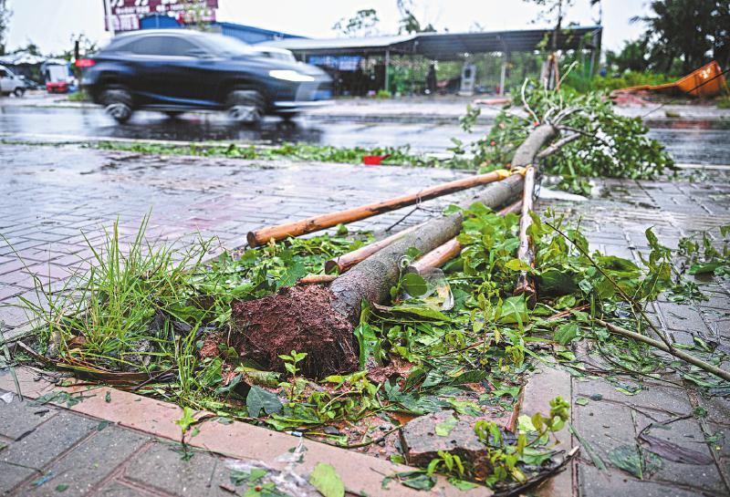 10月5日,在广东省茂名市电白区博贺港,台风在海面掀起海浪。 新华社记者 潘禹杰 摄10月5日,海南省文昌市翁田镇,台风中倒伏的树木。 新华社记者 蒲晓旭 摄