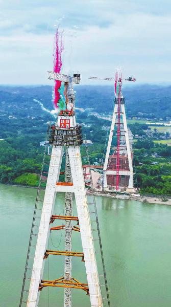 四川首座采用钢壳-混凝土组合索塔结构的大跨斜拉桥主塔封顶