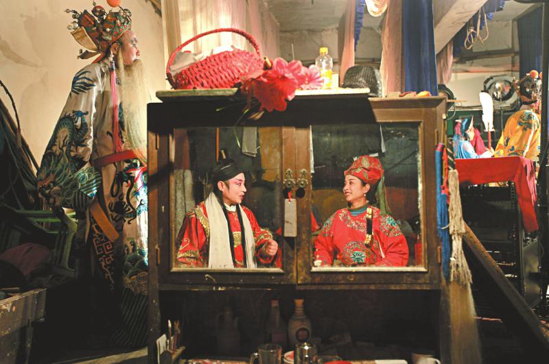 例如,英英川剧团每年放两次假,一次是夏天最热的时候,一次是冬天最冷的时候。一到冬天放假,不少演员就去唱“庙戏”,以维持收入。“民间戏班的演员是流动的,不在英英川剧团演,就去其他戏班演。每次去拍的时候,班子里的成员都不一样,除了班主是固定的。”刘莉说,一个戏班不可能长期只用同一批演员,要不断吐故纳新,以保持观众的新鲜感。