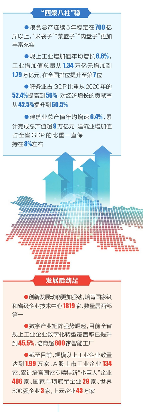 看服务业。四川服务业呈现总量升位、增速领跑发展态势,服务业占GDP比重从2020年的52.4%提高到56%,对经济增长的贡献率从42.5%提升到60.5%。
