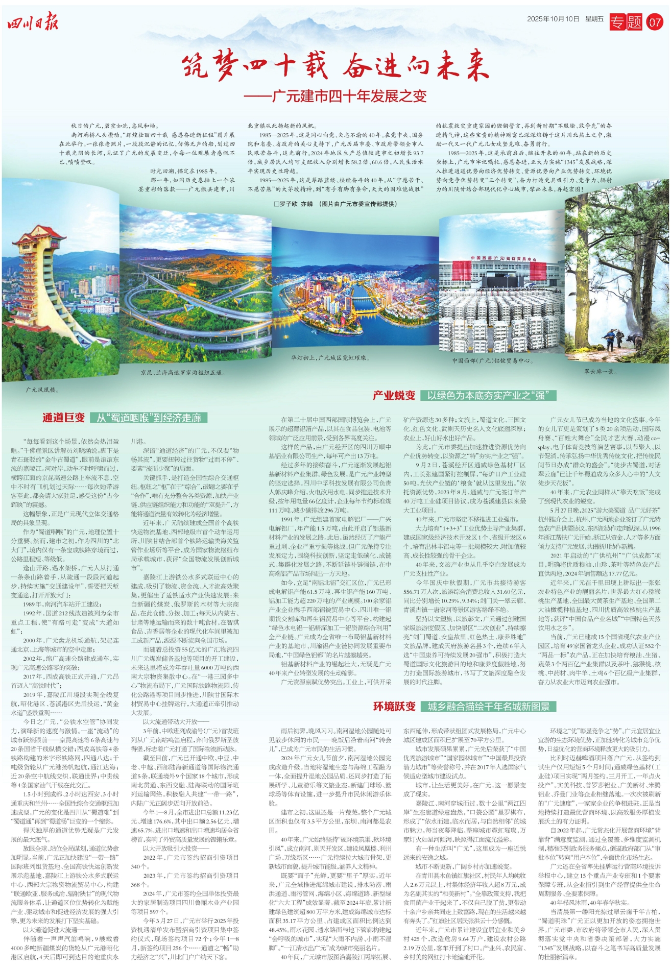 1985—2025年,这是承前启后、继往开来的40年。站在新的历史坐标上,广元市牢记嘱托、感恩奋进,正大力实施“1345”发展战略,深入推进通道优势向经济优势转变、资源优势向产业优势转变、环境优势向竞争优势转变“三个转变”,奋力打造更具吸引力、竞争力、辐射力的川陕甘结合部现代化中心城市,擘画未来,再起宏图!