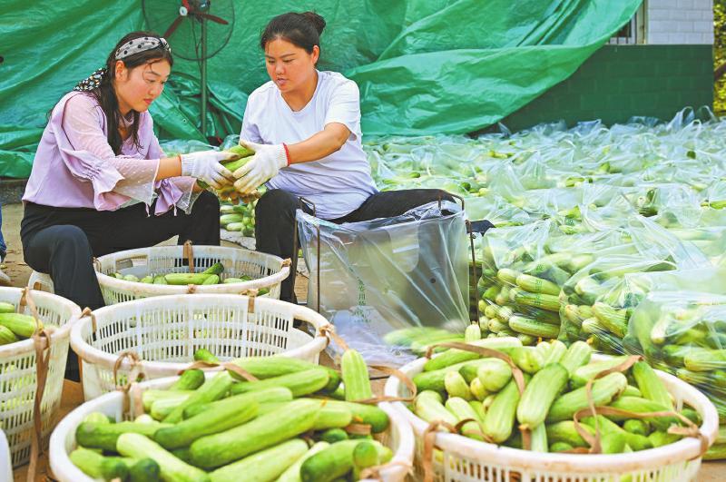 10月10日,眉山市仁寿县谢安镇三顾村,村民正在打包销往成都的新鲜蔬菜。潘帅 摄(C视觉)