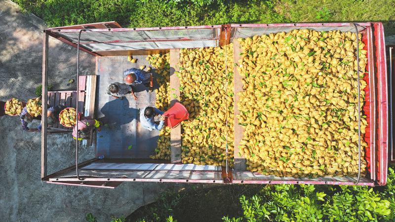 10月10日,在遂宁市安居区西眉镇新宁村柠檬基地,300余亩柠檬迎来丰收季,果农们正忙着采摘、分拣,供应市场。张勤宝 摄(C视觉)