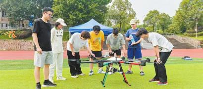 学生开展无人机飞行实训。学生在西部电子中试生产(成都)基地实践。 本组图片均由成都市教育局提供学生进行现代农业装备专业实践。
