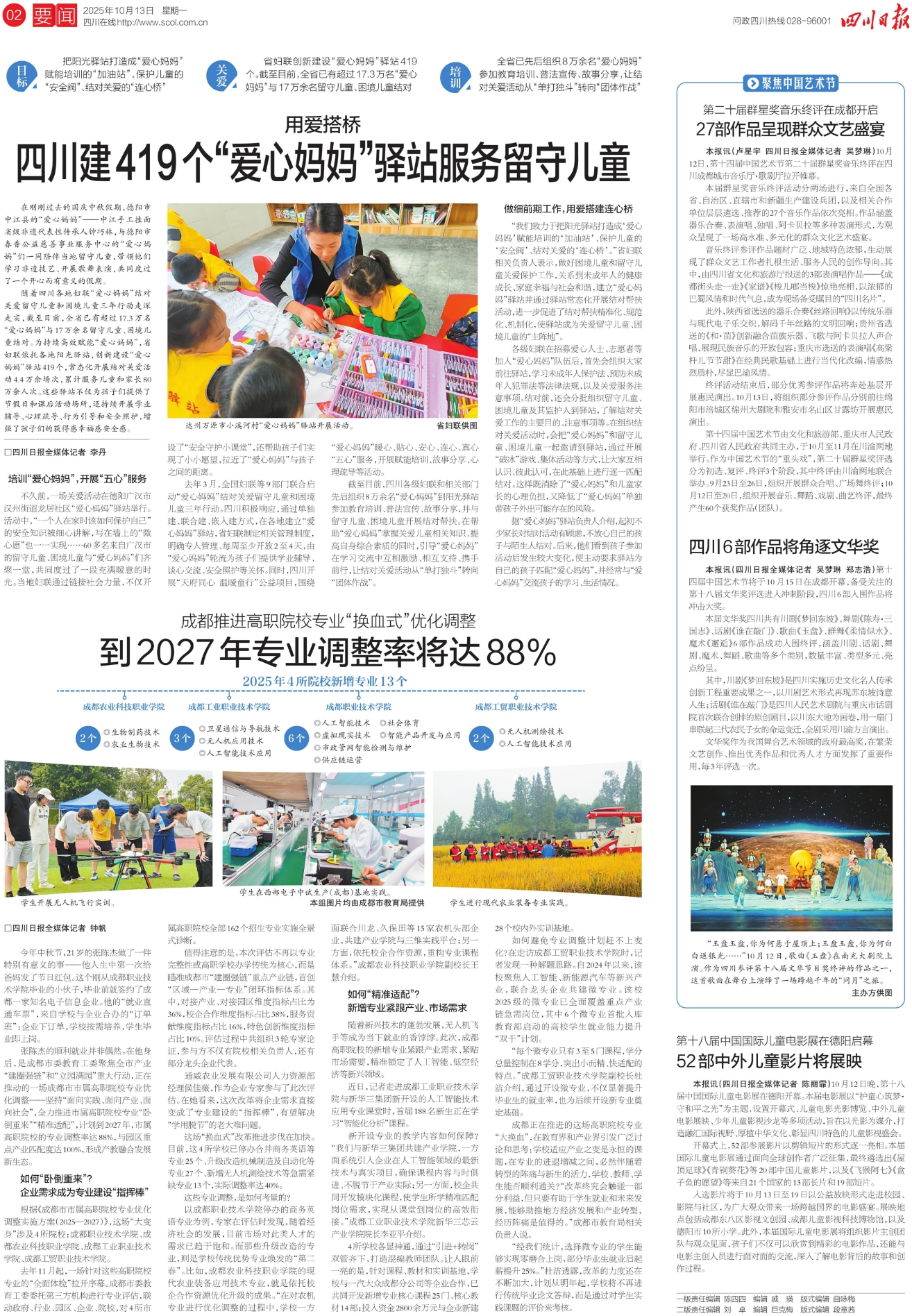 本报讯(四川日报全媒体记者 陈丽霏)10月12日晚,第十八届中国国际儿童电影展在德阳开幕。本届电影展以“护童心筑梦·守和平之光”为主题,设置开幕式、儿童电影光影博览、中外儿童电影展映、少年儿童影视沙龙等多项活动,旨在以光影为媒介,打造融汇国际视野、厚植中华文化、彰显四川特色的儿童影视盛会。