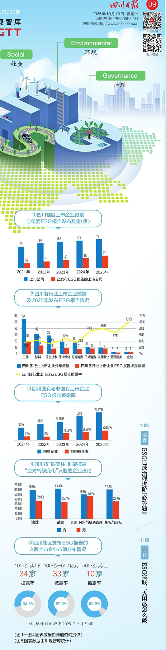 ESG信息披露是观察企业ESG实践最直接的窗口。《四川辖区A股上市企业ESG信披与实践分析报告(2025)》(以下简称《报告》)近日发布,聚焦四川A股上市企业ESG信息披露现状与特点。川观智库通过梳理该报告,并进行深度调研,对四川企业的ESG信息披露情况进行了画像。