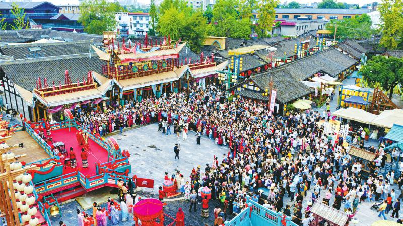 “文旅+消费”——在你的院子·丝路会馆里,千年古城烟火气和俄罗斯传统文化交汇于此,游客在百年院落里品尝异域美食;300余米长的西街,汇聚传统酸辣粉、老茶馆等上百家商铺,游客在这里寻找地道的“川味”。