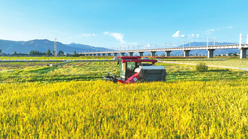 近日,西昌市佑君镇的稻田里,轰鸣的收割机在田间作业,荡开层层稻浪。西昌市众辉种植养殖专业合作社负责人李必勇说:“今年收获的西昌香米籽粒饱满,单产有望突破750公斤。”