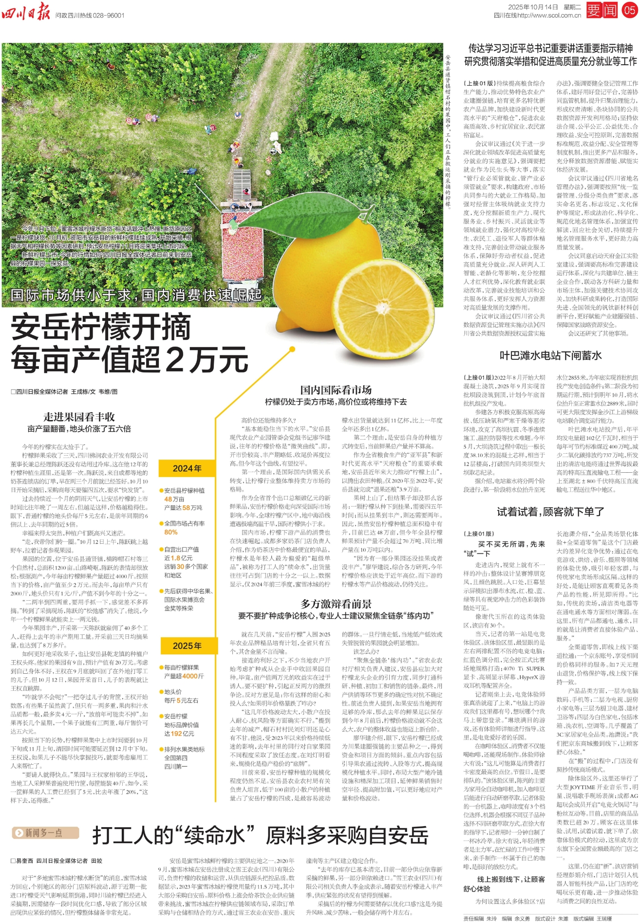 会议强调,要深入贯彻习近平总书记在第八个“中国农民丰收节”到来之际作出的重要指示精神,坚持农业农村优先发展,落实强农惠农富农政策,持续提高粮食综合生产能力,推动优势特色农业产业建圈强链,培育更多名特优新农产品品牌,加快建设新时代更高水平的“天府粮仓”,促进农业高质高效、乡村宜居宜业、农民富裕富足。