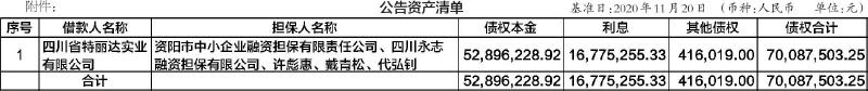 买受人名称:许彪文 联系电话:13908186235 地址:成都市武侯区双楠街道大石西路239号注:1.本公告资产清单列示截止转让基准日2020年11月20日的债权本息余额,截止日到本公告日的本息如有变动以实际金额为准。债务人和担保人应支付给许彪文的利息按借款合同、担保合同及中国人民银行的有关规定计算。2.若债务人、担保人因各种原因更名、改制、停业、吊销营业执照或丧失民事主体资格的,请相关承债主体、清算主体及/或主管部门代为履行义务或承担清算责任。3.清单中担保人包括“保证人、抵押人、出质人”。4.以上公告相关内容与双方签订的《债权转让协议》不一致的,以该协议内容为准。