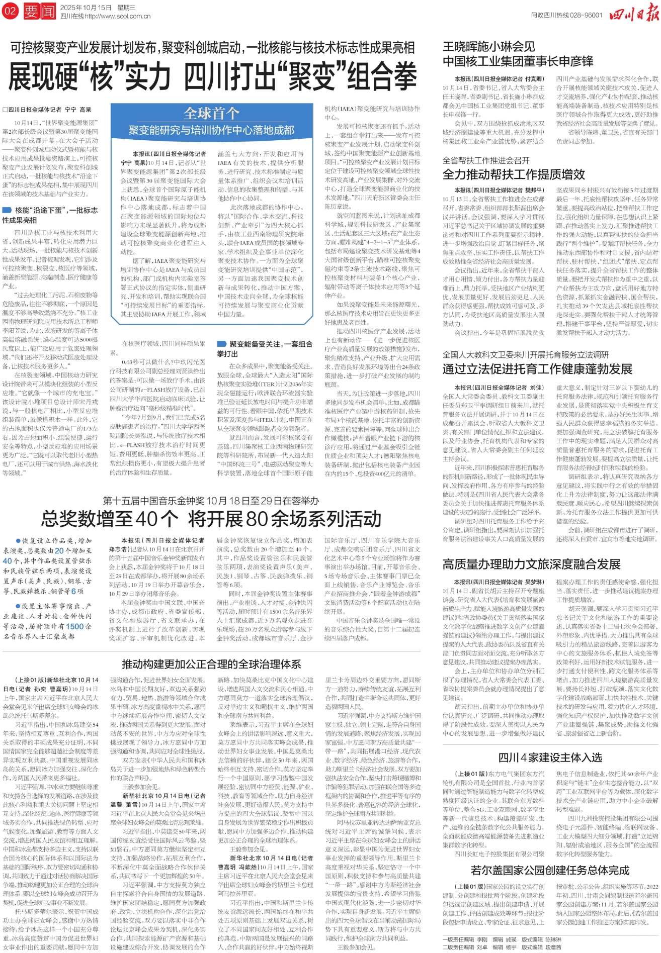 本报讯(四川日报全媒体记者 吴梦琳)10月14日,副省长胡云主持召开专题座谈会,研究省人大代表《培育和发展旅游新质生产力、赋能入境旅游高质量发展的建议》和省政协委员《关于贯彻落实国家文化数字化战略推进数字文创产业建圈强链的建议》领衔办理工作,与提出建议提案的人大代表、政协委员以及省直有关部门负责同志面对面交流,充分听取各方意见建议,共同推动建议提案办理落实。