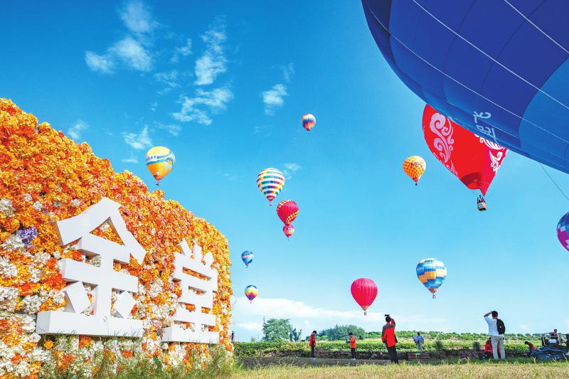 10月15日,2025年全国热气球精英赛(四川金堂站)暨成都市低空文旅消费季活动在成都市金堂县启幕。在启动仪式现场,30支热气球依次完成点火、充气、缓缓升空。四川日报全媒体记者 赵明 摄