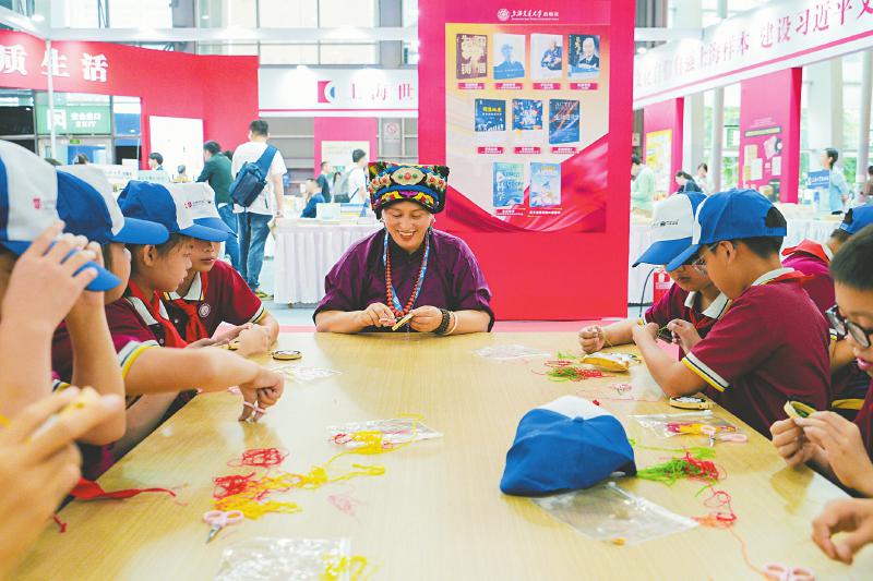 在书展现场,一位身着民族服饰的老师正在指导小学生学习非遗刺绣。四川日报全媒体记者向宇摄