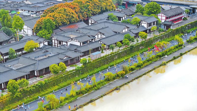 10月19日,2025四川省“最美绿道”系列赛阆中古城站鸣枪开跑。近万名跑步爱好者沿着嘉陵江畔的生态绿道奔跑,在运动中邂逅千年古城的人文魅力。 王玉贵 摄(C视觉)