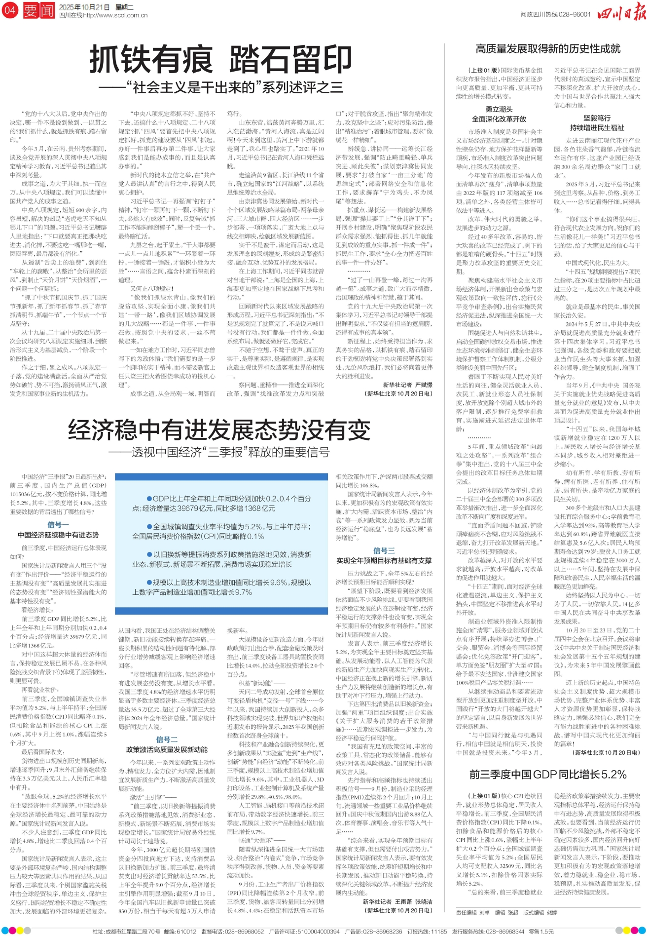 “尽管增速有所回落,但经济稳中有进发展态势没有变。从增长水平看,我国三季度4.8%的经济增速水平仍明显高于多数主要经济体。三季度经济总量达35.5万亿元,超过了全球第三大经济体2024年全年经济总量。”国家统计局新闻发言人说。