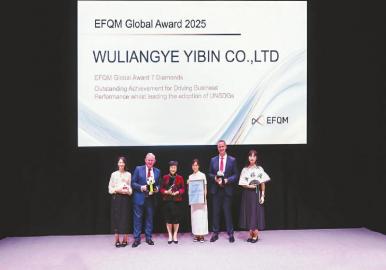 当地时间2025年10月16日,在西班牙举行的EFQM可持续绩效大会暨2025全球奖颁奖典礼现场,五粮液凭借卓越的绩效管理与可持续发展实践,以中国企业参评以来最高分一举斩获EFQM全球奖(七钻)最高级别认证,同时摘得“联合国可持续发展目标践行与企业绩效卓越奖”单项奖。