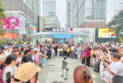 巨型裸眼3D屏幕上的大熊猫“跃”出墙面,潮玩店铺前年轻人排起长队,全球首款文商旅体专用双足机器人“镋钯”在人群中巡游互动——在春熙路商圈,平均不到两天就有一场首店、首展或首秀活动上演。
