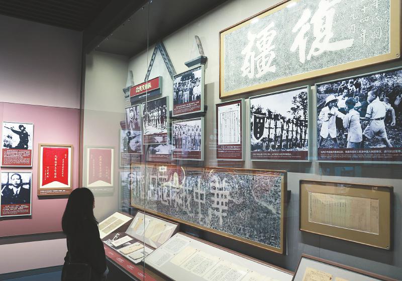 10月25日,参观者在中国人民抗日战争纪念馆参观《不屈的宝岛 丹心向祖国——台湾同胞抗日史实展》。 10月25日,为纪念台湾光复80周年,《不屈的宝岛 丹心向祖国——台湾同胞抗日史实展》在中国人民抗日战争纪念馆开幕。展览共展出珍贵历史图片387张、文物453件,全景式再现了台湾同胞反抗日本殖民统治长达50年英勇不屈斗争的光辉历史。 新华社记者 张晨霖 摄