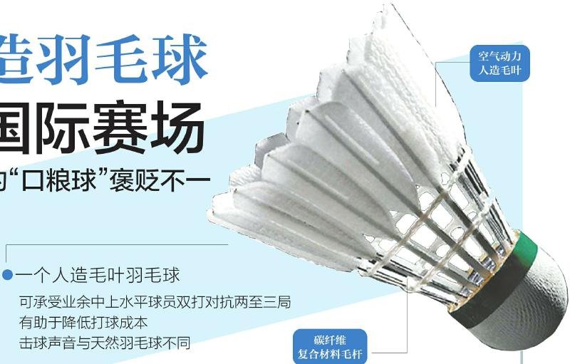 但也有很多业余羽毛球爱好者对人造羽毛球提出了不同意见。在他们看来,尽管人造羽毛球的击球声音通过气孔设计有所改善,但发力不充分时的音色差异仍可能引发心理暗示。在一些专业球友看来,球体在非甜区击打时的线路偏差、旋转速率较慢等问题,使其在高端对抗中仍显不足。此外,碳纤维毛杆的尖锐边缘存在潜在安全隐患,这点在网前快速封挡时还需特别注意。