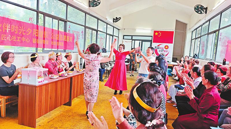 他们发挥余热,参与社区治理,用“老有所为”促就“老有所依”,将多项服务活动做成了社区的“品牌”,如为老人庆祝生日的“夕阳暖辰”活动、推动“三无”道路管理的“净途行动”和上门慰问老人的“夕阳暖心行”等。